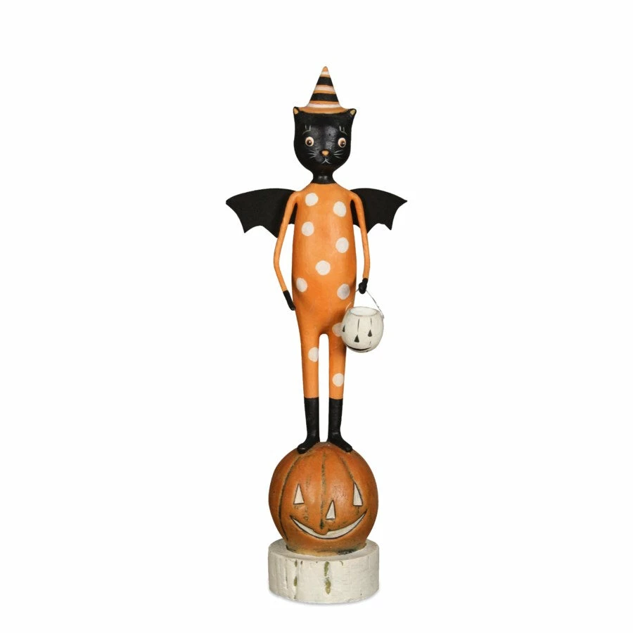 Bring whimsy to your Halloween decorating with this artist-designed curious cat on pumpkin.