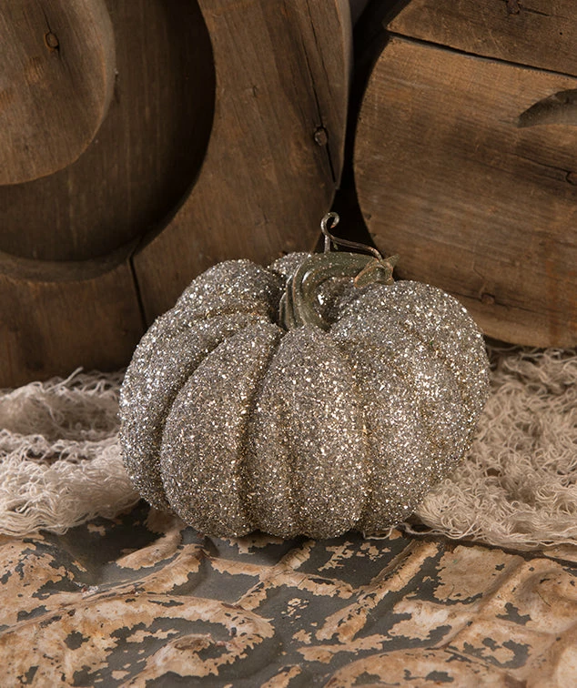 Add beauty to your fall decor with this Glass Glitter Pumpkin.
