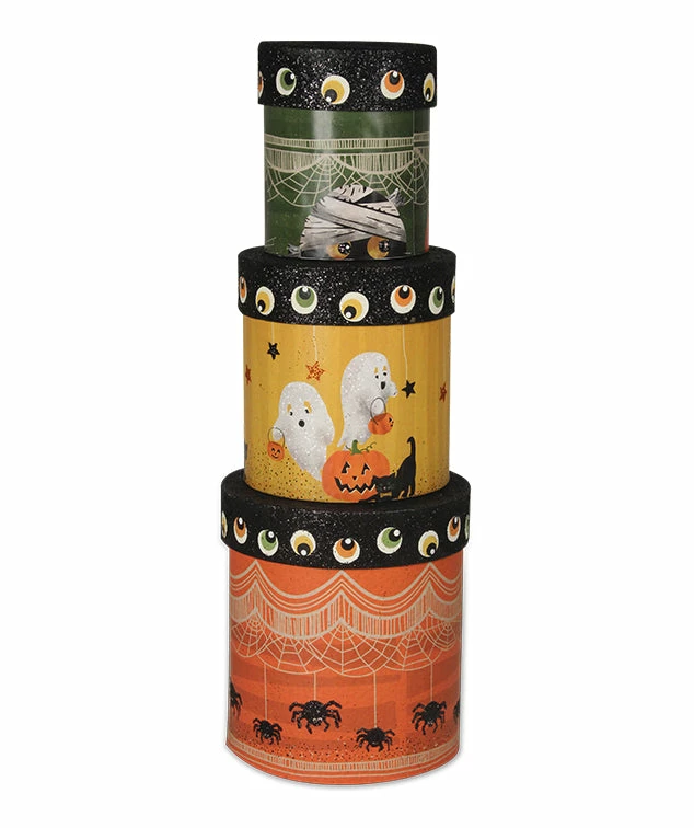 Add a visual dimension to your Halloween decorating with these spooky fun stackable nesting boxes.