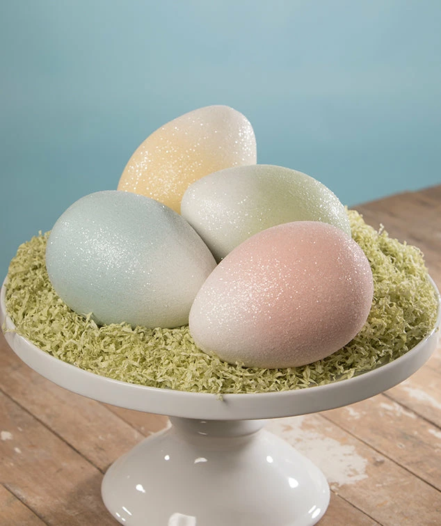 Create a chic springtime display these large glittered paper mache Ombre Easter Eggs