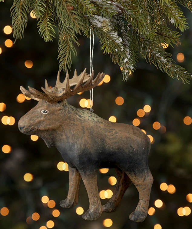 Bring nature to your holiday decorating with this hand-painted paper mache Moose ornament. Â