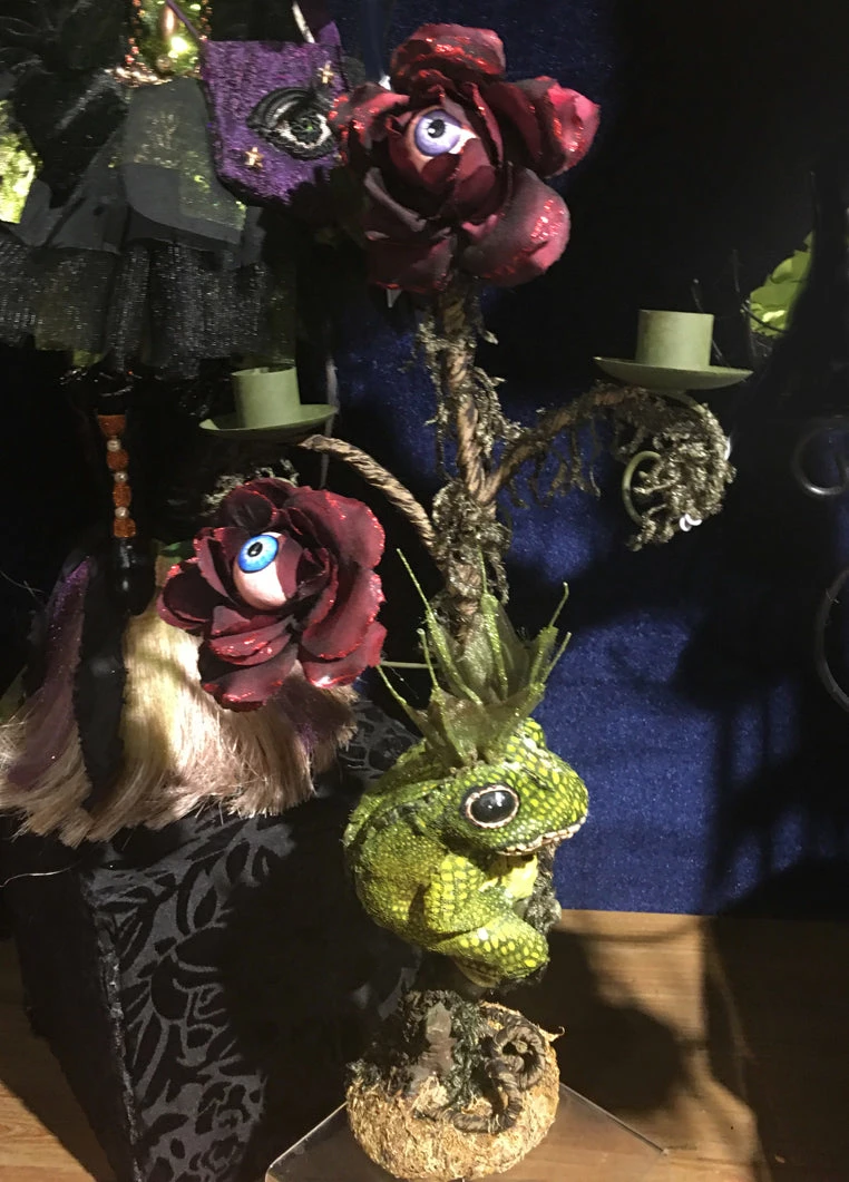 Create a magical mood with this Lizard & Eyeball Rose Candle Holder by Katherine’s Collection.