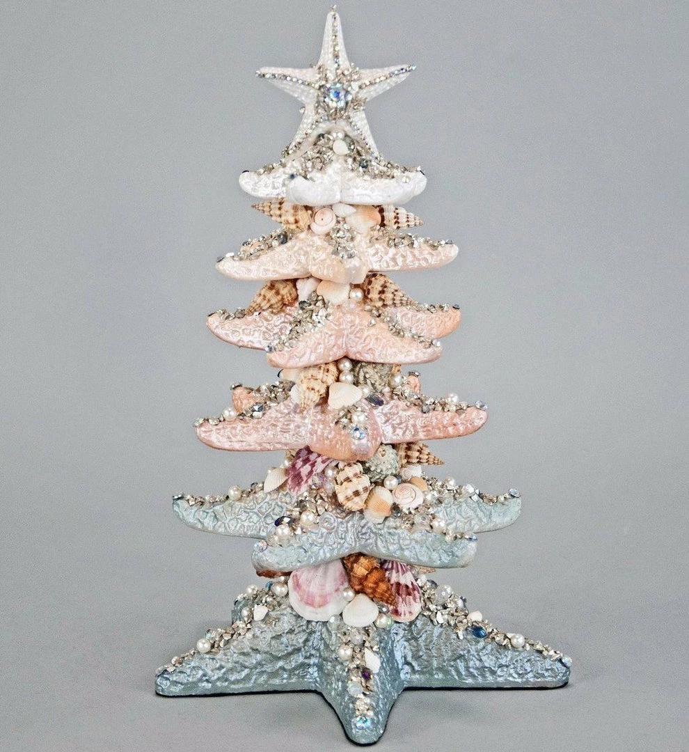 Add unique style to your coastal Christmas decorating with this shell and sequin detailed Starfish Tabletop Tree.