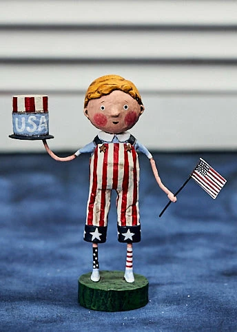 Create a patriotic scene with this cute Land That I Love figurine designed by artist Lori Mitchell.