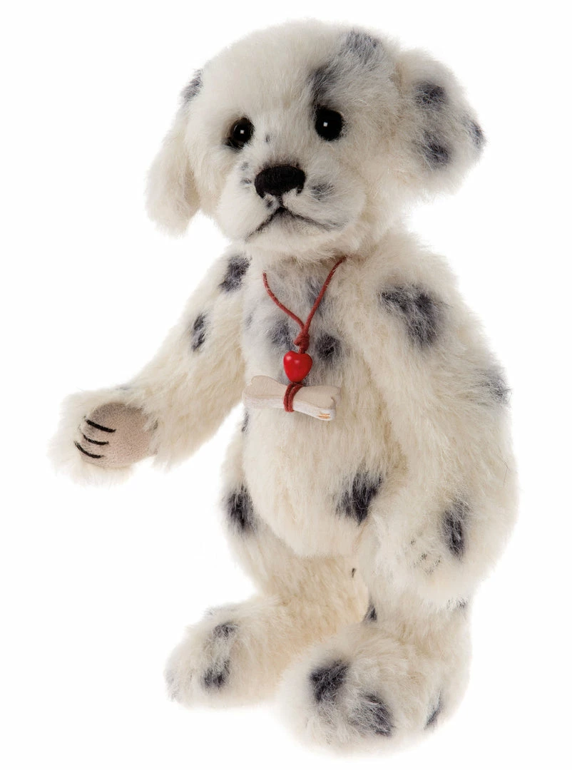 Polka Dot is a cute little puppy Dalmatian. She loves playing and can often been seen burying bones. She carries one with her just in case she feels a bit hungry. Polka Dot puppy is fully jointed and is able to sit or stand (as she has now completed her dog training). She has soft white mohair with random black spots and a sweet demeanor.