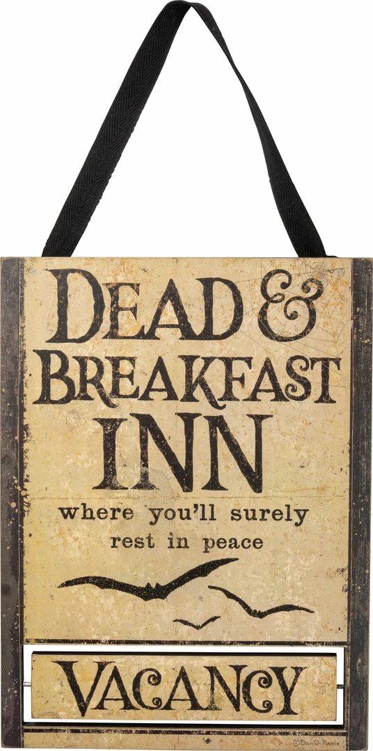 Let the ghouls and goblins know if they will rest in peace with this Dead and Breakfast Sign with interactive rotating “Vacancy or No Vacancy” function.