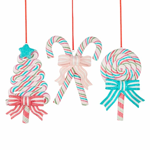 Trim your tree with fun with these pastel Candy Cane Treats Ornaments.