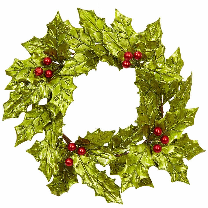 This versatile ceylon green holly berry wreath that doubles as a candle ring will make your Christmas shiny and bright!