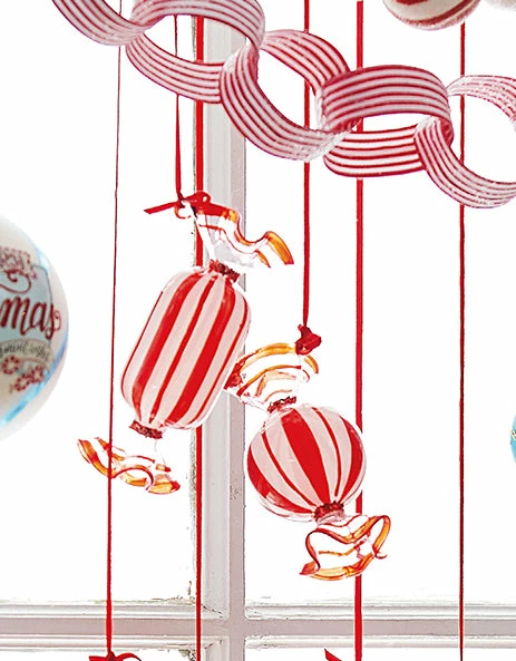 Create a sweet holiday wonderland with these large 5.5″ Red & White Striped Candy Glass Ornaments.