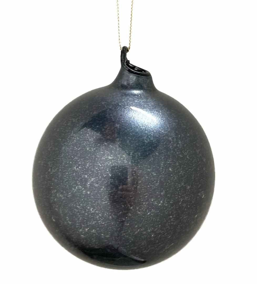 Personalize your holiday decor with these hand-blown Silver Black Glass Ball Ornaments by designer Jim Marvin.
