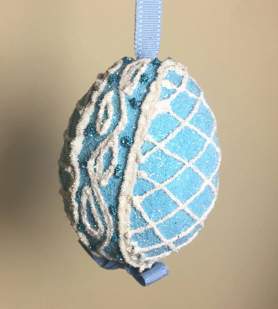 Add a pop of color to your Easter decorating with this pretty Blue Sugar Lattice Ornament.