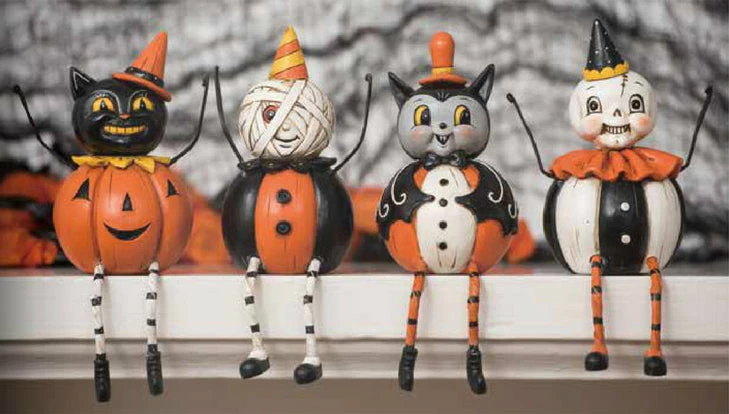 - Set includes; Sassy Cat, Mummy, Bat, & Skeleton