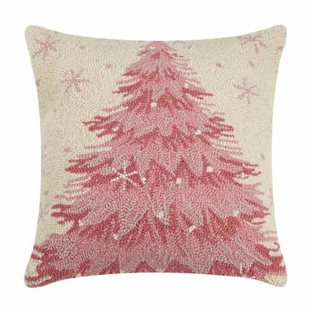 Make your home cozy this holiday season with this stylish Pink Christmas Tree Hooked Pillow.