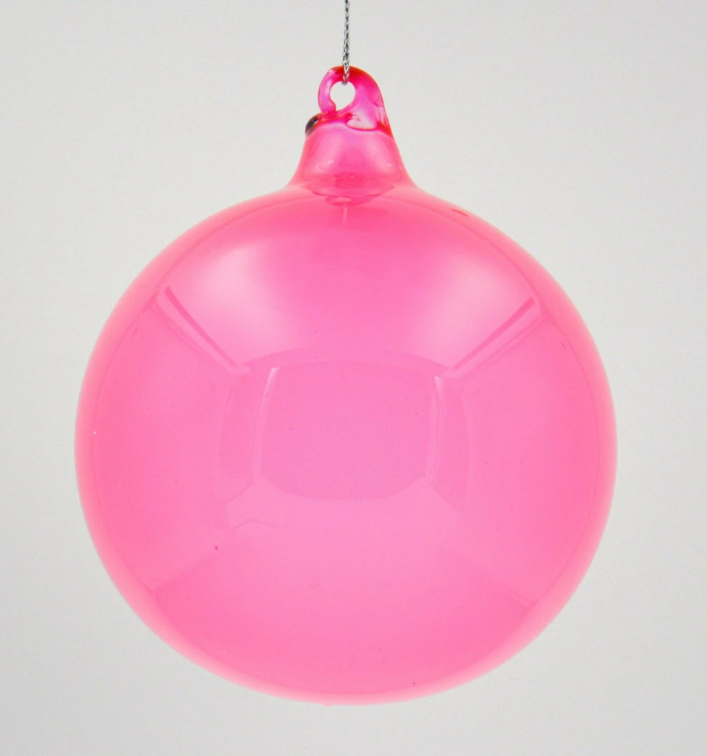 Personalize your holiday decor with these hand-blown Cherry Pink Bubblegum Glass Ball Ornaments by designer Jim Marvin.